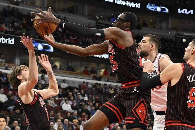 公牛这边外线手感火热,三分27中14,每个球员都能够做出贡献,布泽利斯拿到14分。